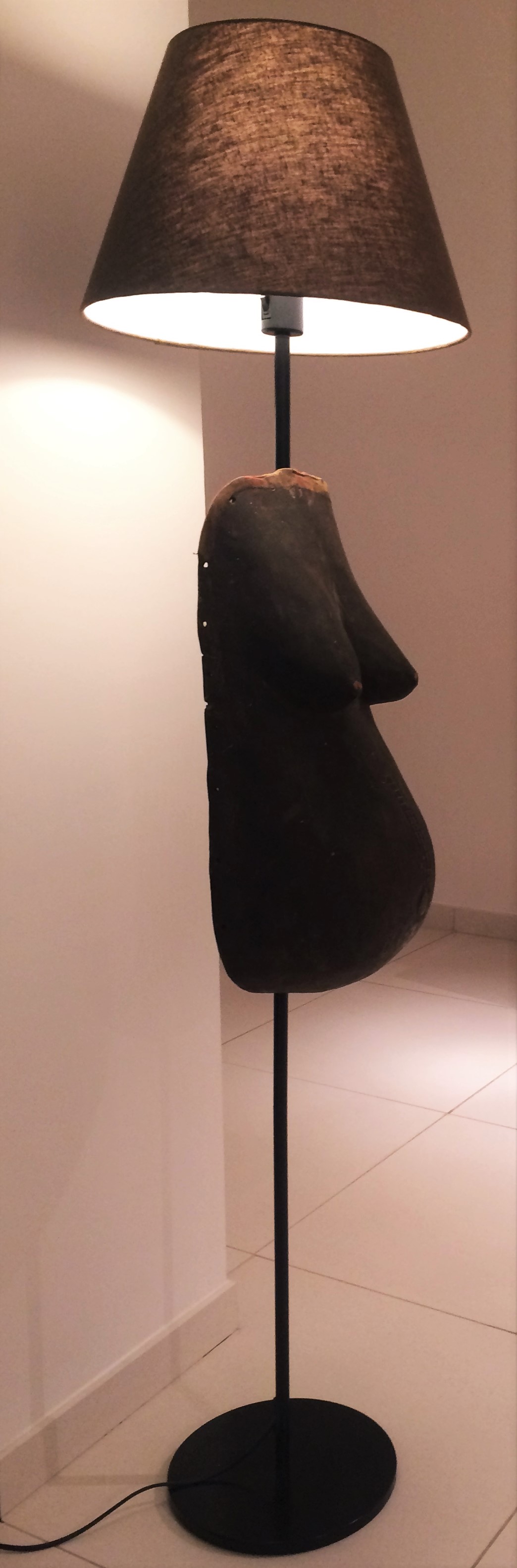 Staanlamp zwart 1m50 met "pregnancy" lichaamsmasker van de Makonde, bruine kap