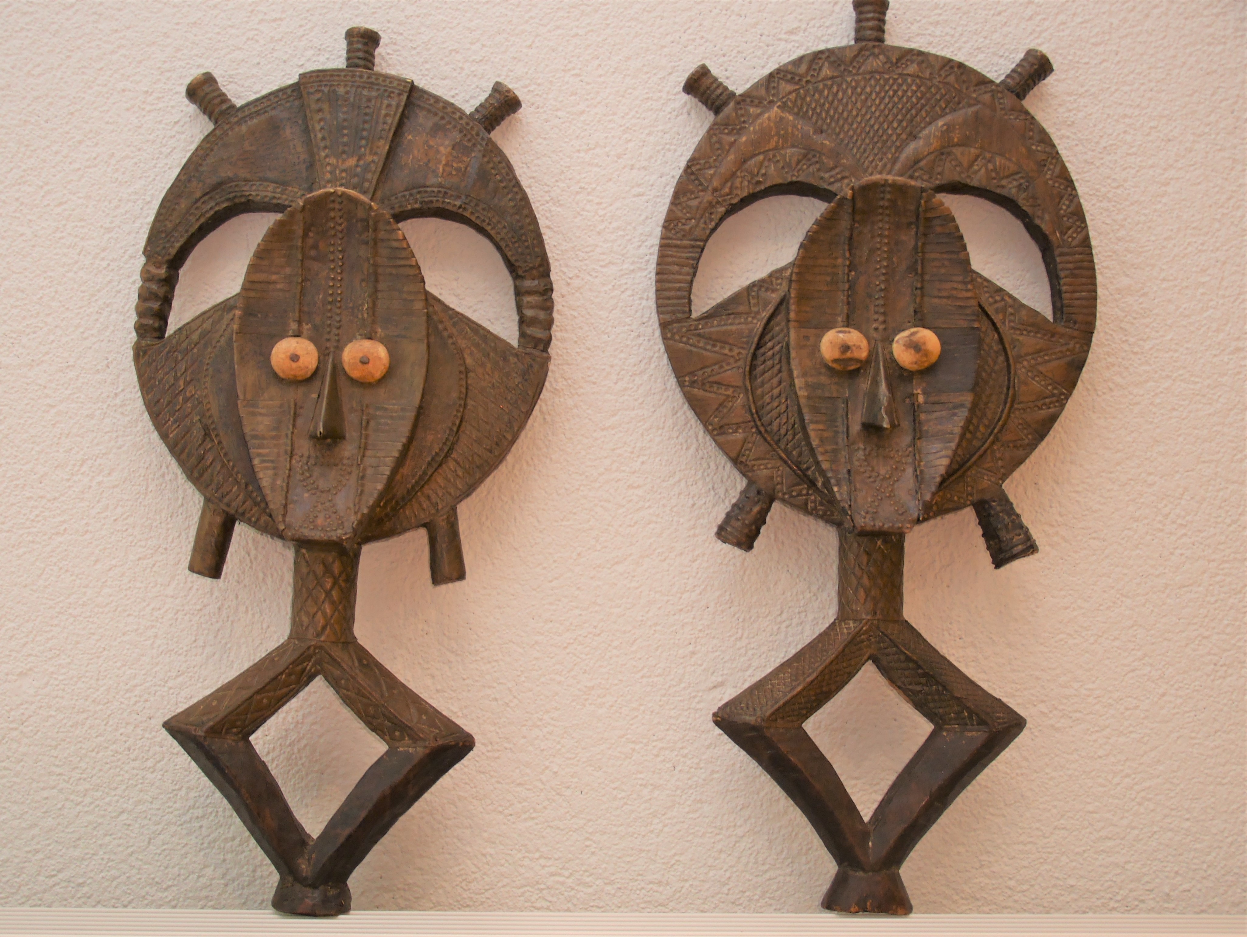 Bakota beeldjes - hout bezet met gehamerde messing