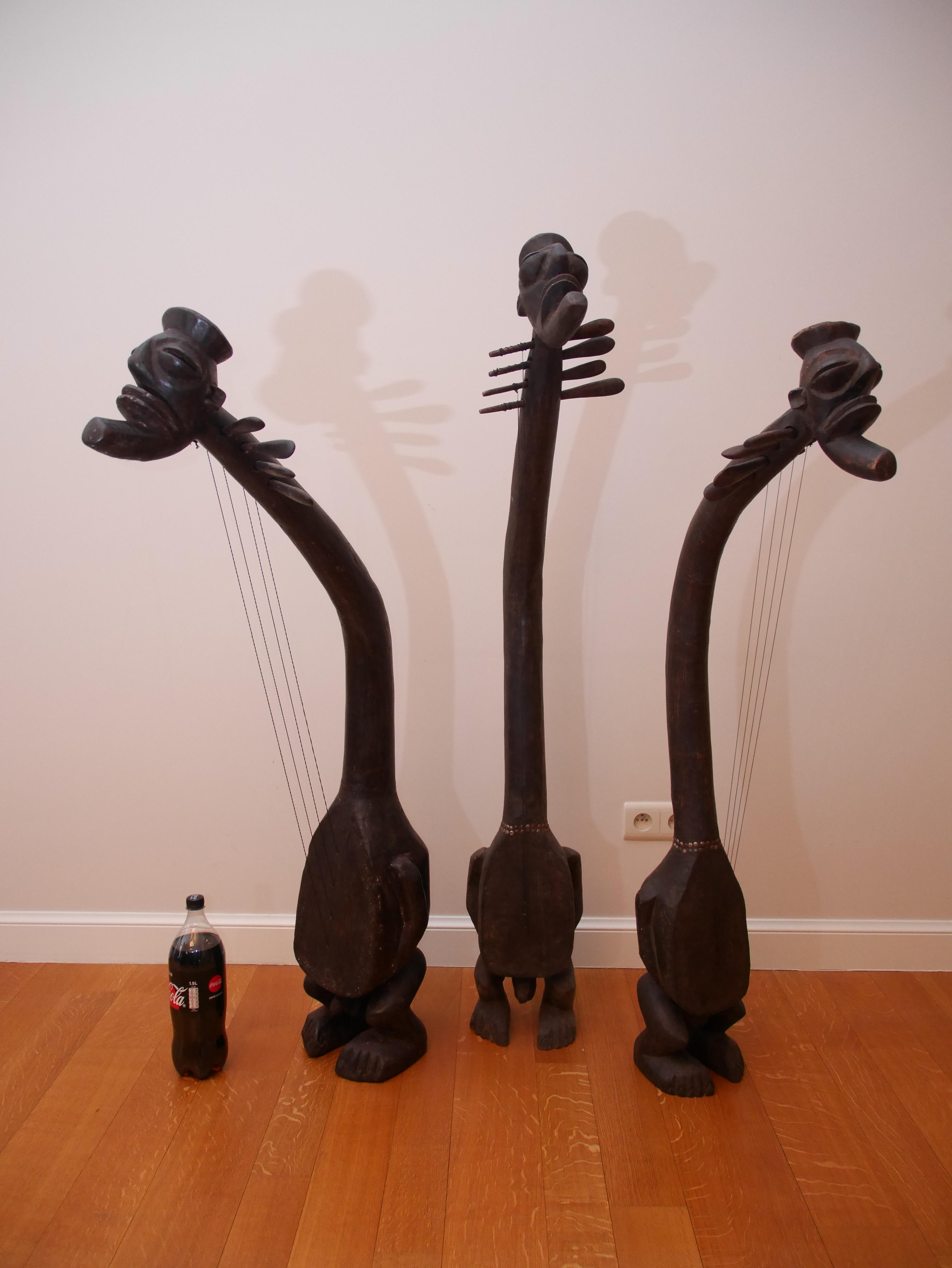 De harpen hier zijn vrije varianten met hoofden geïnspireerd volgens de Songye stijl. Ze werden vervaardigd, eerder als decoratief element dan als muziekinstrument.