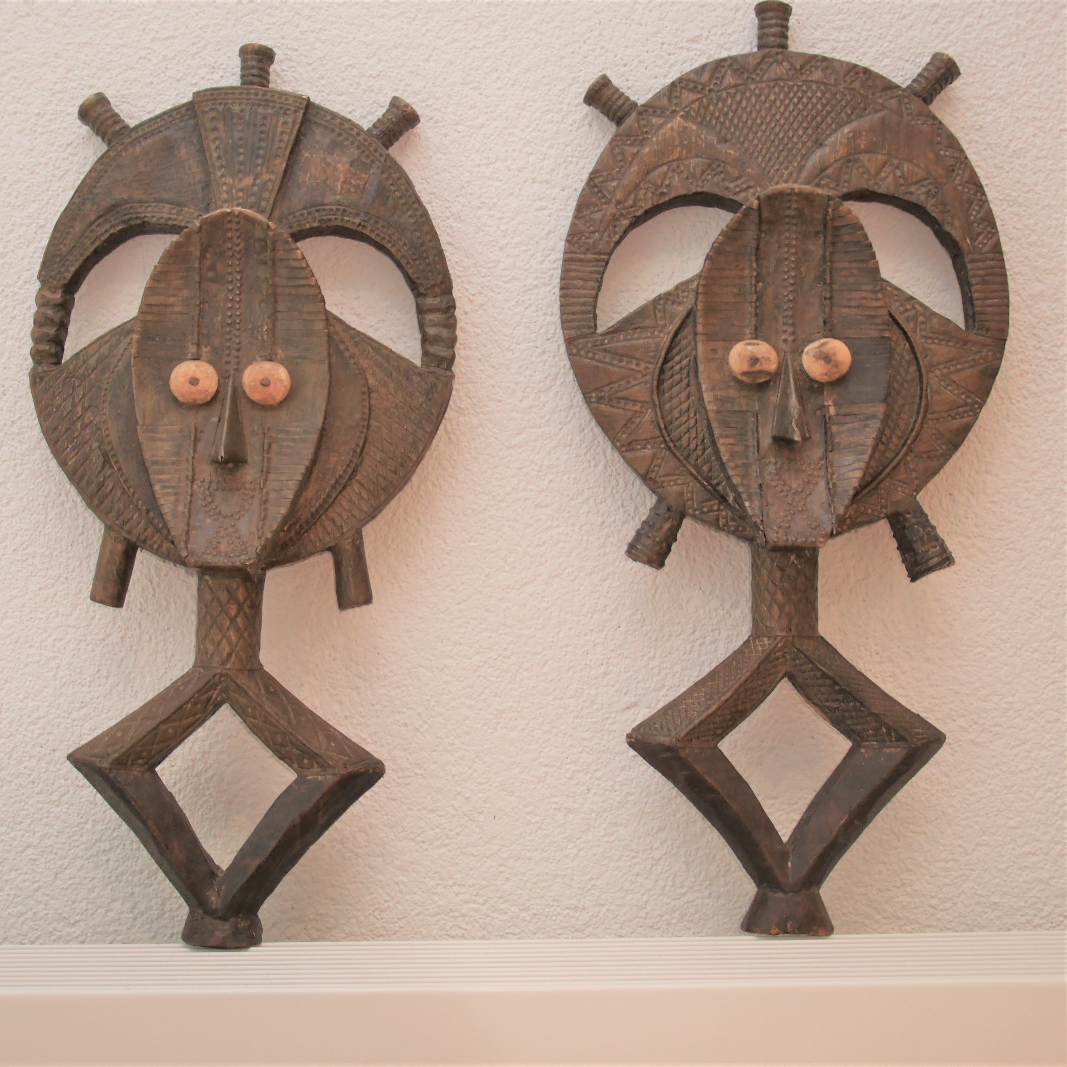 Bakota beeldjes - hout bezet met gehamerde messing - L